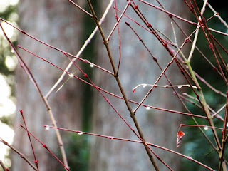 The gardener was continuing to mulch the prarie beds between the neatly renewed bark paths.
