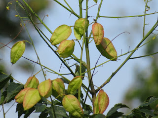 Oh what's this? A small tree towards the back of the herbaceous border has lantern like pods on it. It's a young golden rain tree with its pods forming earlier than the pods on the older tree further round.