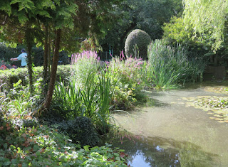 While waiting for the wedding party to arrive I waited by the pond - and the gardener occupied himself weeding and dead-heading in the flower bed by the gate.
