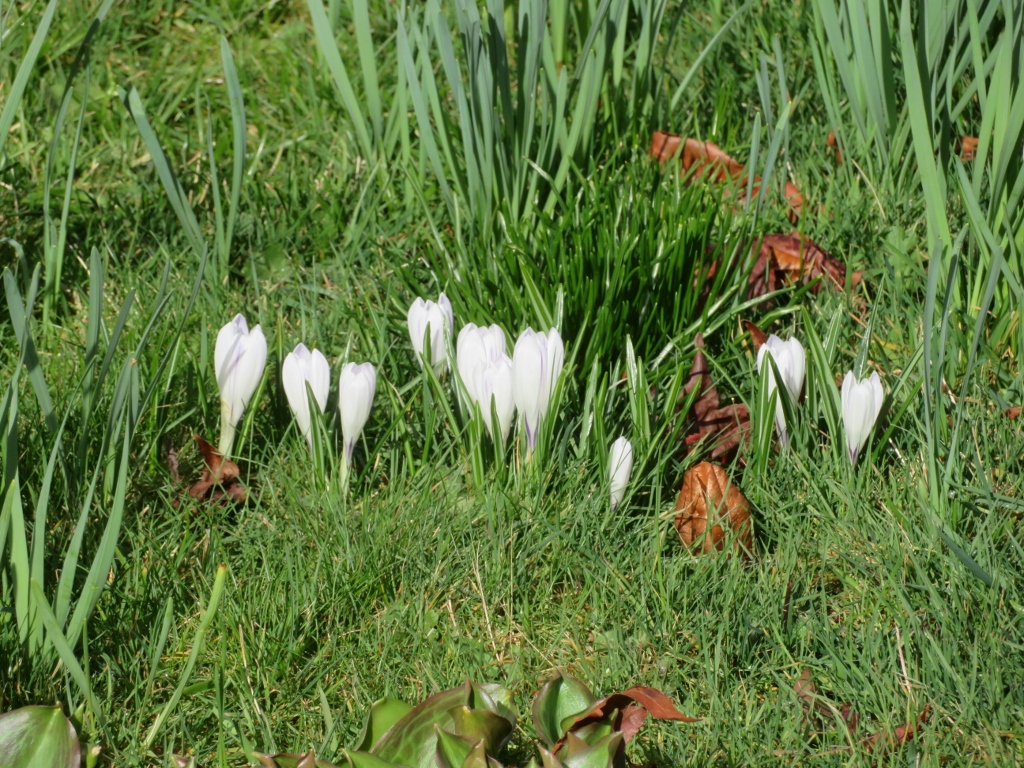 White crocuses - I watched for quite a while as a bee popped in and out of the flowers making them bob and bounce.